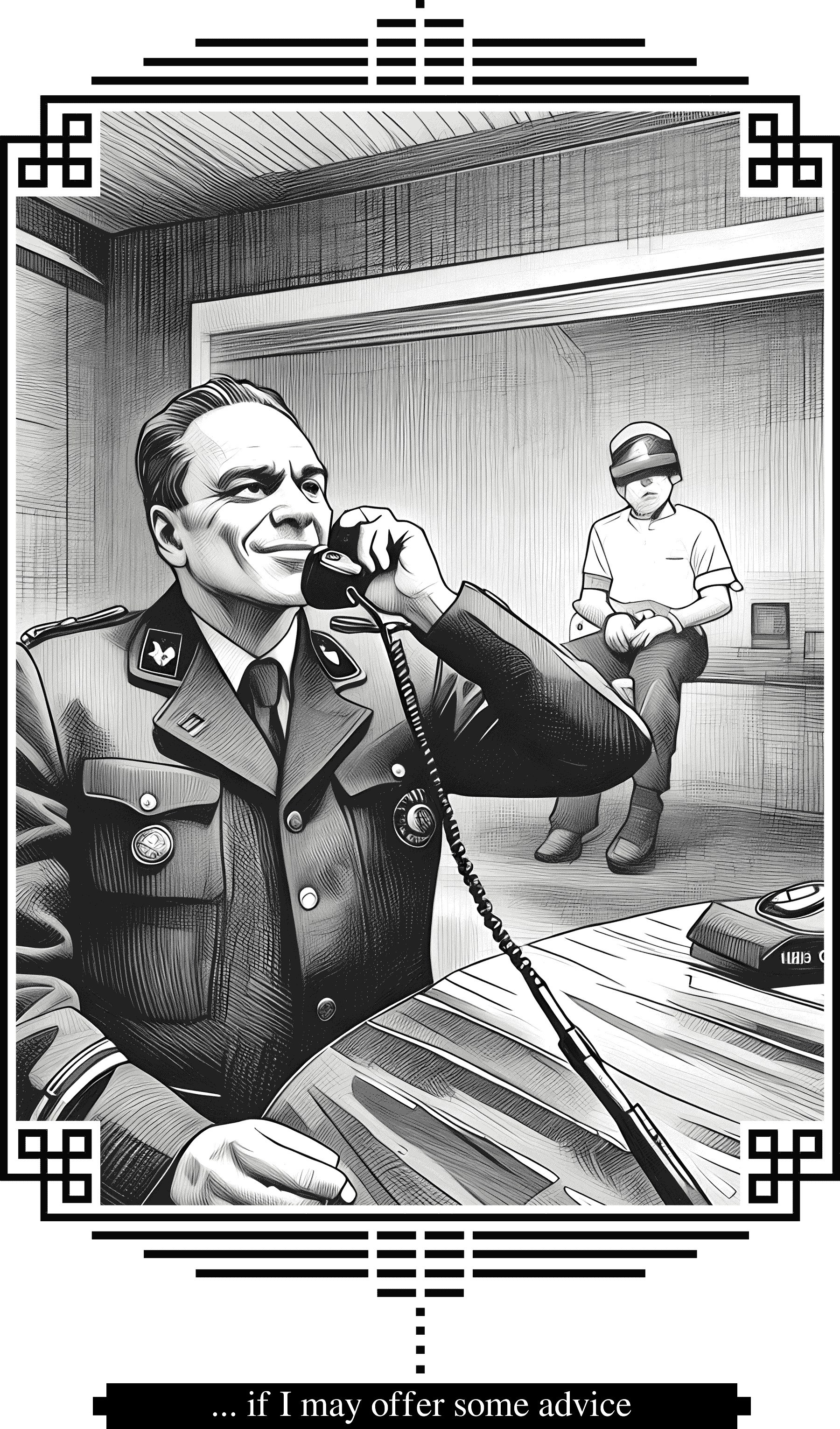 — Don’t worry. It’s a minor offense, really, but if I may offer some advice, the young man should stop. The law is the law, and even small things accumulate.